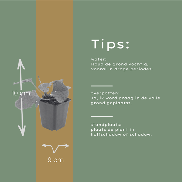 De Brunnera macrophylla, ook wel het Kaukasisch vergeet-mij-nietje genoemd, is een prachtige schaduwminnende vaste plant met groot, hartvormig blad en een sierlijke natuurlijke uitstraling. In het voorjaar verschijnen talloze lieflijke blauw-witte bloemetjes die de tuin direct een frisse, vrolijke toets geven. Deze sterke plant voelt zich perfect thuis onder bomen, langs schaduwrijke borders of als bodembedekker. Dankzij het lage onderhoud en de uitstekende winterhardheid is Brunnera macrophylla een ideale keuze voor tuinen die het hele seizoen door sfeer en structuur mogen uitstralen.